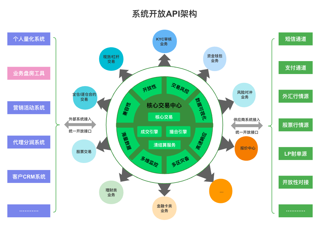 接口覆盖面全:开放接口能力丰富,支持白标API,客户端API以及外部结算API等。 稳定数据推送:支持白标业务数据实时订阅推送,确保数据准确,实现定制化业务。 实时交易数据:REST API与WebSocket接入,确保交易数据低延迟、高可靠性。